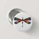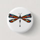 Eine Hand-skizzierte Libelle in den prismatischen Buntglasfarben huscht würdevoll über diesem Knopf.