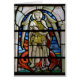 Fotografie eines Abschnitts des schönen Buntglasfensters an St Michael Kirche, Helston in Cornwall. Ein winged Ritter mit einem roten Drachen. St Michael hatte einen legendären Kampf mit altem Nick bei Helston. www.zazzle.co.uk/poldarkcountry