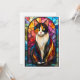 Charmante Buntglas-Grußkarte. Gold ist gedruckt (falsches Gold), nicht Folie oder Glitter. Der Text kann geändert oder gelöscht werden. AI-Bild generiert von IveyCottage.