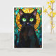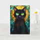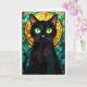Buntglas-Stil Charmantes schwarzes Kätzchen Grüne Karte