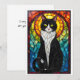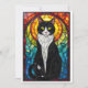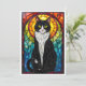 Buntglas-Stil Schwarz-weißer Smoking-Kater Flach Karte