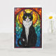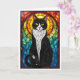Buntglas-Stil Schwarz-weißer Tuxedo-Kater Karte