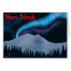 An einer kalten Nacht in Alaska leuchten lila und blaue Nordlichter über schneebedeckte Berge. "Buon Natale" erscheint in rot.