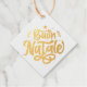 Buon Natale in italienischer Goldfolie auf einer Seite dieses Geschenkschilds, mit weißem Rücken und goldener Farbe An: und From: Text