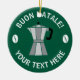 Buon Natale Moka Pot Christmas tree ornament. Vintage Italian coffee maker drawing with custom greeting.