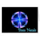 Ein helles, blaues und lila Fraktal, das auf den Nordstern (Polaris) und die Nordlichter hinweist und auf einem sternenförmigen Hintergrund überlagert ist. Italienischer Text mit dem Text "Buon Natale" erscheint in leuchtendem Blau und Weiß.