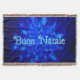 Ein Schwarm blauen Fraktals Schneeflocken. Italienischer Text mit dem Text "Buon Natale" erscheint in leuchtendem Blau und Weiß.