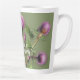 Eine hohe Latte-Tasse für den Kräuterhändler. Hübsche lila und grüne Burdockumhüllungen um den Becher über einen schlauen grünen Hintergrund. Fügen Sie eine beliebige Formulierung in weißlicher Farbe hinzu. Das Beispiel ist "Wendy's Apothecary". Ein nettes Geschenk für einen Naturheilkunde, Botaniker, Kräuterforscher und Gärtner.
