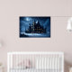 Poster eines dunkelgotischen Schlosses eingebettet zwischen alten Bäumen und den Bergketten dahinter. Oben strahlt der Silbermond durch die Wolken und Schneeflocken und wirft ihr Glühen über eine friedliche winterliche Szene aus, ein äußerer Frieden, der die Qualen des Herrschers des Schlosses widerlegt. Nächte nach Nacht verbringt er die Tage unter seinen Gräbern damit, sich zu erinnern, was war und was hätte sein können. Von den vier Ecken des Landes hat er den Besuch einer stolzen Krähe, einer weisen Eule, einer furchtlosen Taube und des wunderschönen Schwans empfangen, aber er brauchte nichts, das sie in seinem hohlen Herzen geben konnten, nur die Hoffnung seines Wunsches, und die Wahrheit seines Lebens war der ewige wart für den Wunsch, Realität zu werden. Dieses Kunstwerk von Schnee und Hohlherzen wurde in Leonardo.ai erzeugt und dann von mir verändert.
