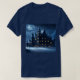 T - Shirt einer dunkelgotischen Burg, eingebettet zwischen alten Bäumen und den Bergketten dahinter. Oben strahlt der Silbermond durch die Wolken und Schneeflocken und wirft ihr Glühen über eine friedliche winterliche Szene aus, ein äußerer Frieden, der die Qualen des Herrschers des Schlosses widerlegt. Nächte nach Nacht verbringt er die Tage unter seinen Gräbern damit, sich zu erinnern, was war und was hätte sein können. Von den vier Ecken des Landes hat er den Besuch einer stolzen Krähe, einer weisen Eule, einer furchtlosen Taube und des wunderschönen Schwans empfangen, aber er brauchte nichts, das sie in seinem hohlen Herzen geben konnten, nur die Hoffnung seines Wunsches, und die Wahrheit seines Lebens war der ewige wart für den Wunsch, Realität zu werden. Dieses Kunstwerk von Schnee und Hohlherzen wurde in Leonardo.ai erzeugt und dann von mir verändert.