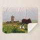 Ein hübscher Clydesdale-Hengst befindet sich in der Nähe eines alten Schlosses.