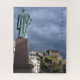 Statue mit Blick auf das Edinburgh Castle in Edinburgh, Schottland.