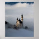 Malerei auf Schloss Neuschwanstein in Bayern mit Wolken in den Tälern.