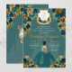 Aquamarin & Gold Floral Elegante Quinceanera Einladung zum Geburtstag