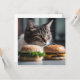 Eine ruhige Tabbattacke sitzt mit zwei Käseseburgern davor, die scheinbar für den perfekten Augenblick zum Genießen gewartet sind. Der sanfte Blick der Katze ist introspektiv, in Gedanken verloren, während sie über die Köstlichkeit vor ihr nachdenkt. Die Einfachheit des Bildes widerlegt seinen Charme, denn die feinen Details des Katzenfells und die verlockenden Burger vereinen sich zu einer wunderbaren visuellen Leckerei. Dieses Design wurde mit KI-Technologie entwickelt und ist auf verschiedenen Zazzle-Produkten erhältlich, von Kleidung bis Wohngestaltung und mehr, bereit, eine Touch von Katzenflüstern in Ihren Alltag zu bringen