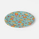 Teller des blauen Papiers für ein Burger Party oder GRILLEN mit einem Muster der Cheeseburger, der Fischrogen, der Sterne und der Herzen.