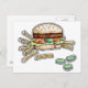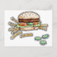 Pop Art HAMBURGER mit FRIES. Eine klassische Pop-Kunstgrafik der All American Burger & French Fries - Ein Sesam-Samen-Bun und Pommes Frites als Seitenteile! Retro und Spaß, ideal für Restaurants, Diners und die Zuhause Küche.