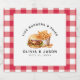 Coole Burger und Pommes frites Flaschenweinflaschen aus picknicken Polterabenden mit kariertem Hintergrund. Personalisieren Sie es mit Ihren Veranstaltungsdetails.