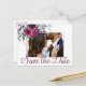 Burgund Aquarell Blumen Foto rett Datum Hochzeit Ankündigungspostkarte