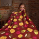 Diese Decke weist ein buntes Herbsterntempo mit Kürbissen, Cranberries, Eicheln und Kastanien auf bordeauxfarbenem (individualisierbarem) Hintergrund auf. Ideal für Herbst und Erntedank Wohngestaltung!