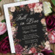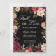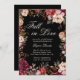 Schöne Bordeaux und cremefarbene Blumen auf schwarzen Herbst "Fall in Liebe" Braudusche Einladung. Lettern ist ein eleganter Kalligraphieskript-Schriftart.