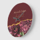 Burgund Blume Elegante mit Goldakzent Große Wanduhr
