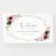 Fügen Sie Ihrer Hochzeitsfeier eine persönliche Touch mit diesen stilvollen und unvergesslichen Party hinzu! Das Design ist bordeauxrot und rot, die Blume sind in Rosa gehalten, die Grünflächen und der goldene Rahmen auf weißem Hintergrund.