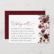 Vervollständigen Sie Ihre Hochzeitssaison mit dieser stilvollen Wunschkarte. Das Design ist bordeauxrot, rot und lila, Aquarellfarben, Blume und Grün auf weißem Hintergrund.