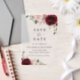 Mit dieser bezaubernden Save the Date Karte laden Sie Freunde und Familie in Stil und Set ein. Das Design ist bordeauxrot und rot, die Blume und das Grün sind in Rosa gehalten.