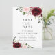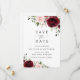 Mit dieser bezaubernden Save the Date Karte laden Sie Freunde und Familie in Stil und Set ein. Die Blume sind bordeauxrot und rot, die Farbe des Wassers und die Grünflächen auf weißem Hintergrund.