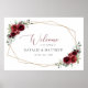 Fügen Sie Ihrer Hochzeitsfeier eine persönliche Touch mit diesen stilvollen und unvergesslichen Party hinzu! Das Design ist bordeauxfarben mit Blume, Grün und Goldrahmen auf weißem Hintergrund.