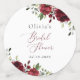 Fügen Sie Ihrem Brautparty eine persönliche Touch mit diesen stilvollen und unvergesslichen Party hinzu! Das Design ist bordeauxfarben, die Blume im Wasser und das Grün im Hintergrund.