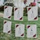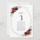 Fügen Sie Ihrer Hochzeitsfeier eine persönliche Touch mit diesen stilvollen und unvergesslichen Party hinzu! Das Design ist bordeauxfarben mit Blume, Grün und Goldrahmen auf weißem Hintergrund.