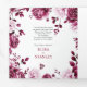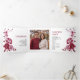 Burgund Blumen Blume Hochzeitsfeier und Party-Programm. Inspiriert durch die raffinierte Porzellanmanufaktur und das klassische chinesische Design, besticht es durch ein atemberaubendes, bordeauxfarbenes Blumenmotiv, das von zarten Pfingsten geschmückt ist und Liebe und Wohlstand symbolisiert. Die harmonische Mischung aus tiefbordeauxrot, sanft rosa und knalligen weißen Farbtönen erinnert wunderbar an die subtile Eleganz alter Gemälde, die Ihren besonderen Tag mit einem Hauch von ausgeklügelter Romantik bereichern. Jedes Programm entfaltet sich zu einem intimen Interieur und zeigt ein geliebtes Foto von Ihnen beide - eine herzliche, persönliche Touch, die Ihre Gäste schätzen. Mit ihren eleganten Namen in klassischer Typografie präsentiert sich dieses Programm nicht nur informativ, sondern ist ein Beleg für Ihre einzigartige Liebe und Ihren exquisiten Geschmack.
