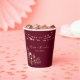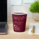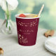 Diese eleganten Hochzeitspapiere sind mit bordeauxroten Hintergründen, leuchtenden Lichtern und goldenen Blumenkunstwerken ausgestattet. Diese Tassen sind perfekt für Herbst- oder Winterhochzeiten und werden mit den Namen und dem Datum des Paares abgestimmt.