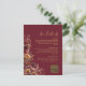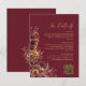 Machen Sie es Ihren Gästen leicht, alle benötigten Informationen sowie Ihre Hochzeitswebsite mit dieser schönen Hochzeitsdetails-Karte zu finden. Diese bietet ein rustikales Boho-Chic-Design mit einem eleganten goldenen Schriftzug und Herbstwildblumen auf burgunderrotem Hintergrund. Es gibt einen anpassbaren QR-Code, mit dem Sie Ihre Gäste auf Ihre Website für weitere Informationen und zur RSVP leiten können. Eine perfekte Ergänzung zu Ihren Hochzeitseinladungen!