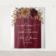Dieses elegante Tapisserie-Banner im Hintergrund, das auf die Koordination mit unserer Hochzeitskollektion Sunset Burgundy Floral ausgerichtet ist, zeigt eine atemberaubende Blumenstruktur im Wasser in kräftigen bordeauxfarbenen und warmen Rostorangen. Perfekt entworfen, um unsere Hochzeitskollektion Sunset Burgundy zu ergänzen, können Sie sie einfach mit Ihren Details personalisieren. Drücken Sie einfach die Schaltfläche "Bearbeiten mit Entwurfswerkzeugen", um den Textstil und die Platzierung anzupassen. Koordinationsgegenstände, die vor Ort verfügbar sind. c) Das glückliche Cat Studio