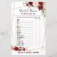 Burgund Florals Brautparty Game PRINTED, Polterabend Game
