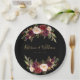 Custom Burgundy Bloral Black Gold Chic Engagement Party-Platte mit Braut- und Gräuel-Namen und Hochzeitstag. Auch ideal für eine rustikale Hochzeit, eine Hochzeit im Herbst oder eine Winterhochzeit.