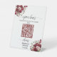 Burgund Floral Moderner QR Code Hochzeit Open Bar Sockelschild