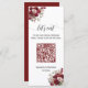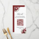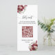 Burgund Floral Modernes QR Code 4x9'' Hochzeitsmen Menükarte