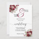 Eine elegante Hochzeitseinladung mit staubigen bordeauxfarbenen Blume und eleganter Kalligraphie, die Sie mit Ihren Details anpassen können.