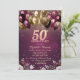 Burgund Glitzer Balloons Blume 50. Geburtstag Einladung