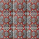 Diese Keramik-Kachel weist ein symmetrisches Design auf, das sowohl komplex als auch harmonisch ist und sich durch eine Mischung geometrischer Formen und komplizierter Muster auszeichnet. Die Kachel ist mit symmetrisch platzierten, grauen Blumenmotiven geschmückt und bildet einen eleganten Kontrast zu den roten und beigen geometrischen Formen. Die Diamant- und Dreiecksformen fügen dem Design ein dynamisches Element hinzu, das es visuell faszinierend macht. Das Design ist sowohl horizontal als auch vertikal symmetrisch, wodurch ein ausgeglichener visueller Effekt entsteht. Der Stil verbindet Elemente traditioneller Muster mit moderner Geometrie und ist damit ein vielseitiges Stück, das sich für verschiedene Innenstile eignet.