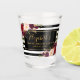 Wasserfarbe Burgundy Marsala Blüte mit Schwarz-Weiß Streifen Junggeselinnen-Abschied Shotglas - Goldene Schrift Text