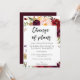 Burgund Marsala Floral Änderung der Pläne - Weiß Einladung