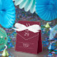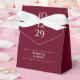 Elegante Hochzeitsbegünstige Box mit Ihrem besonderen Datum und Namen Set in moderner Typografie auf bordeauxrotem Hintergrund. Sie können mit Ihrer eigenen Danksagung unter dem Deckel personalisieren. Ein perfekter Weg, um sich bei Ihren Gästen zu bedanken! Entwickelt von Thisisnotme©