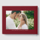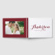 Elegantes Gästebuch mit moderner Kalligraphie und einfacher Typografie mit einer Fotovorlage für den Rücken. Passen Sie Ihre persönlichen Daten an. Die Farben sind bordeauxrot und weiß, perfekt für Herbst- oder Herbsthochzeiten und andere Veranstaltungen. Das wird ein perfekter Sake sein. Das ist Teil einer Hochzeitskollektion.
