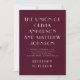 Typografie minimalistische Hochzeitseinladung in Bordeaux- und Pflaumenfarben. Bitte kontaktieren Sie mich, wenn Sie weitere Informationen benötigen.