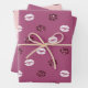 Burgund Pink Roter Glitzer Weiße Kisses Lippen Geschenkpapier Set